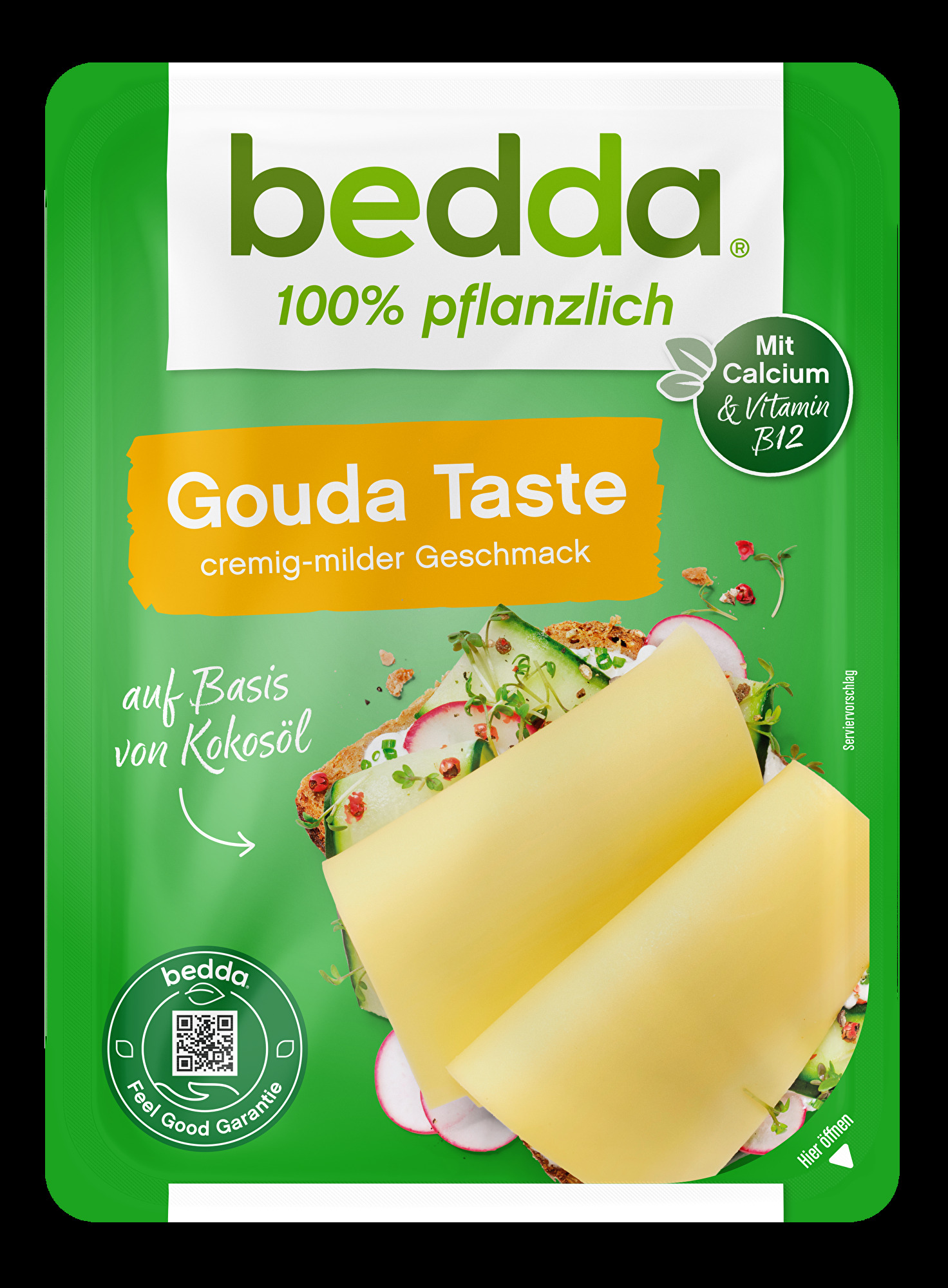 bedda - vegane Käsealternativen und Salate 167-BED-0008bedda Scheiben Gouda Taste, 150g nach Vorbild eines jungen Gouda,
