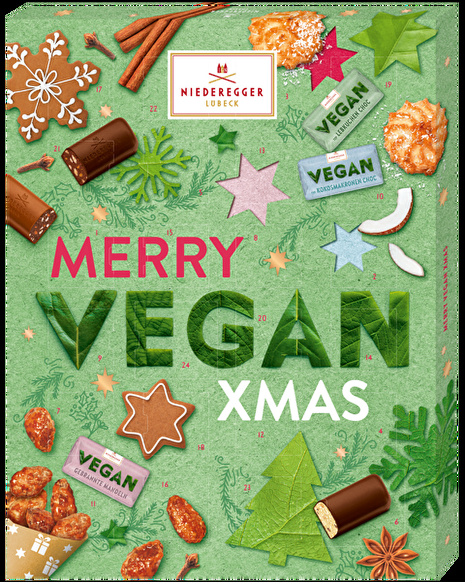 Der neue vegane Adventskalender von Niederegger hält 24 kleine Leckereien in 5 verschiedenen Sorten für euch bereit. Enthalten sind zartschmelzende Kreationen, wie feinstes Marzipan, Mandel-Brownie- und Double-Choc-Schokolade und Nougat Knusperwaffel. Diese Versüßung kommt definitiv bei allen gut an! Wenn du dir oder Jemand anderem die Vorweihnachtszeit verschönern willst, greif am Besten direkt zu.